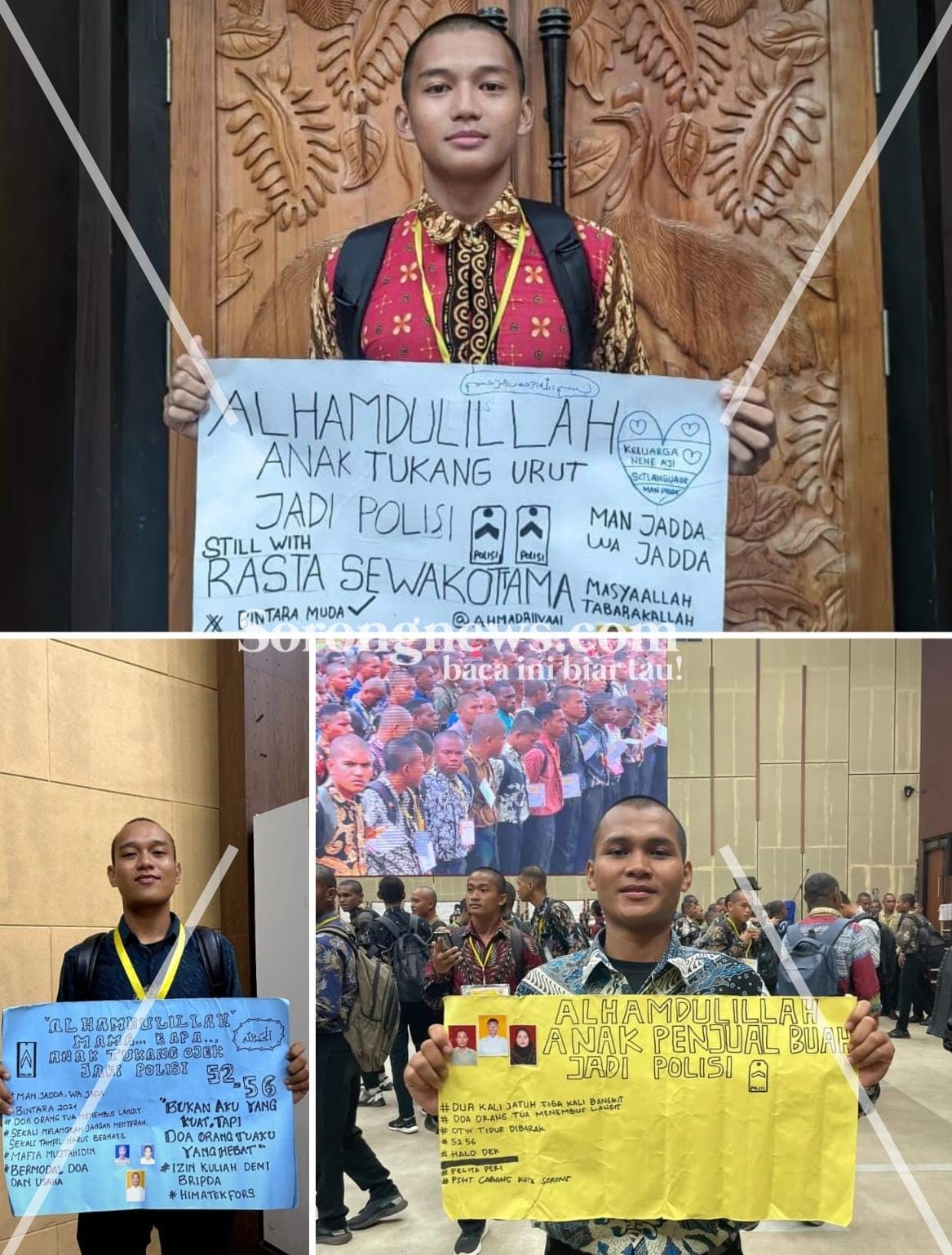“Alhamdulillah anak tukang urut jadi Polisi. Doa Ibu menembus langit,”tulis satu Casis lulusan MAN Kota Sorong. (Rolly/oke)