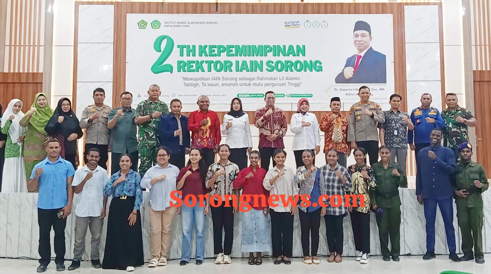 SORONG, PBD – Memasuki dua tahun masa kepemimpinan Rektor IAIN Sorong, Dr. Suparto Iribaram menggelar refleksi kepemimpinan bertajuk “Mewujudkan IAIN Sorong sebagai Rahmatan Lil Alamin: Tabligh Amanah untuk Mutu Perguruan Tinggi” di Aula IAIN Sorong, Rabu (29/4/2026).
