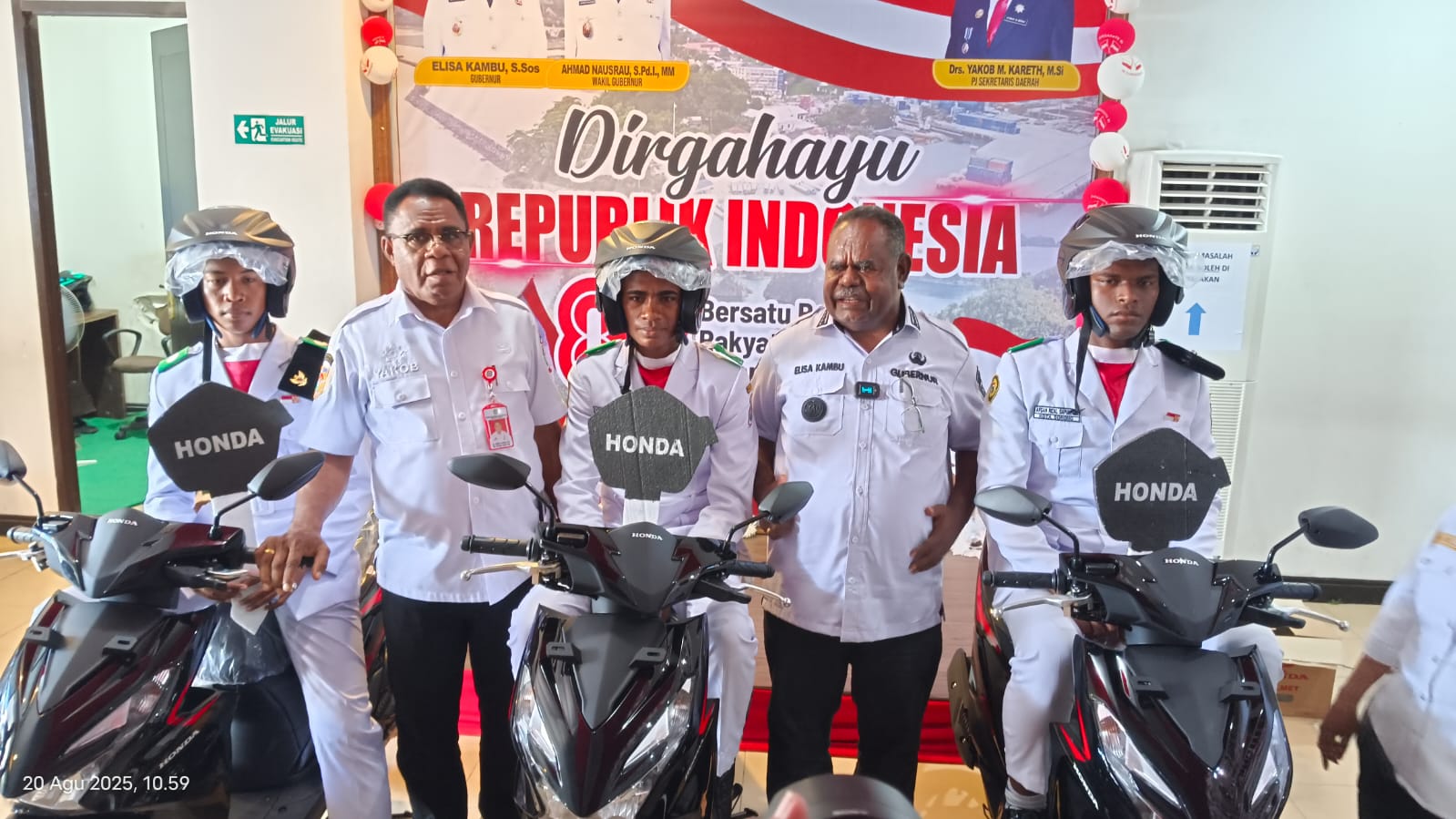“Pesan saya, adik-adik Paskibraka harus bersyukur kepada Tuhan karena berhasil menyelesaikan tugas penting dalam upacara detik-detik Proklamasi Kemerdekaan RI ke-80. Mereka bukan hanya menunjukkan kedisiplinan, tetapi juga kebersamaan dan solidaritas luar biasa,” ucap Gubernur PBD Elisa Kambu.
