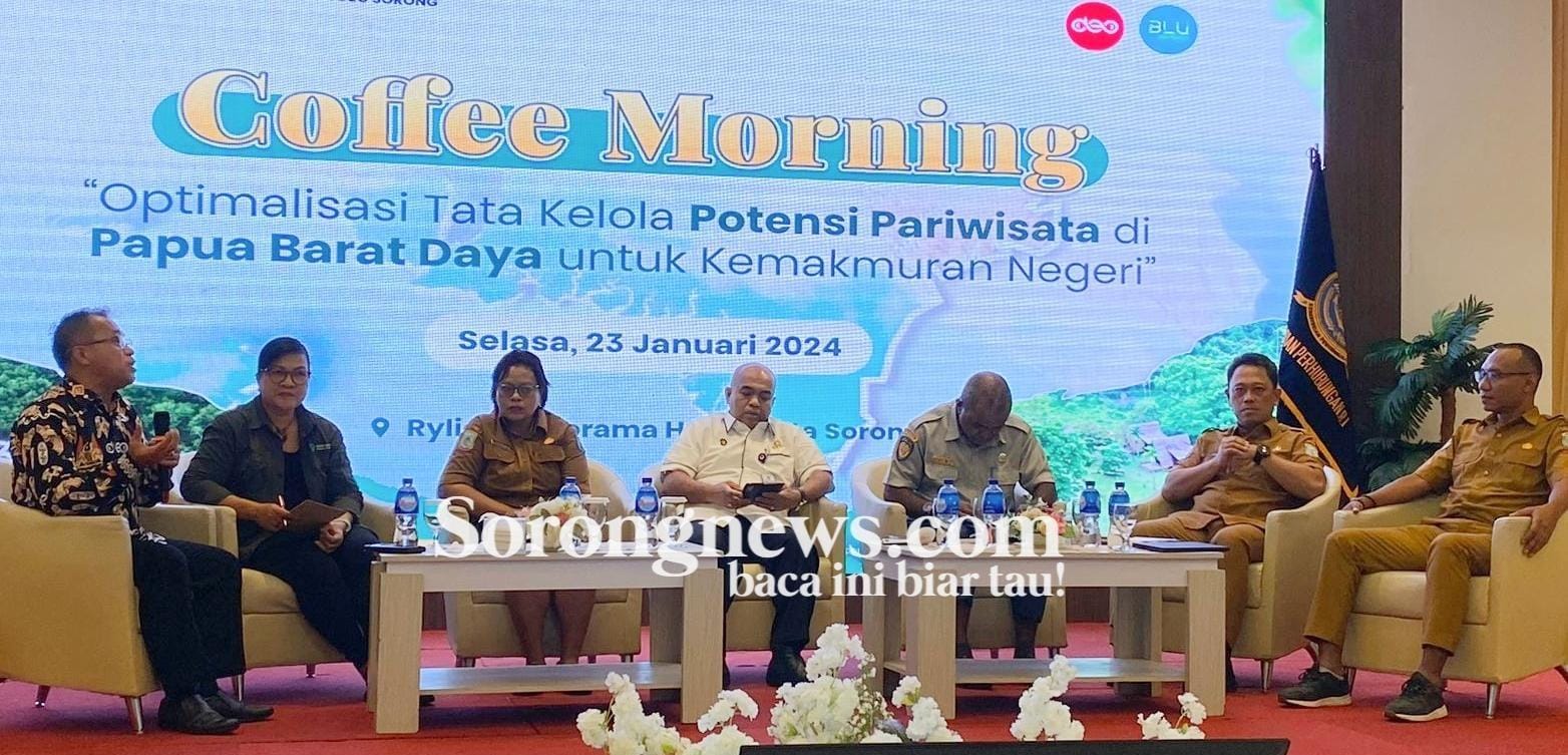 SORONG, PBD- Guna menggali informasi dan mengoptimalkan potensi pariwisata di Papua Barat Daya, Badan Pelayanan Umum UPBU DEO Sorong gelar Coffee Morning dengan melibatkan Pemrov-PBD dan sejumlah stakeholder Pariwisata di Kota Sorong, Papua Barat Daya, Selasa (23/01/24).