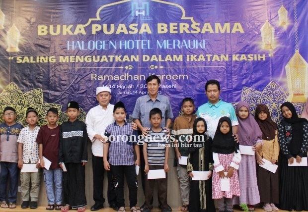 MERAUKE, PAPUA SELATAN – Halogen Hotel Merauke melaksanakan buka puasa bersama anak-anak yatim, relasi bisnis dan karyawan beserta keluarga, Jum’at (14/4/23).