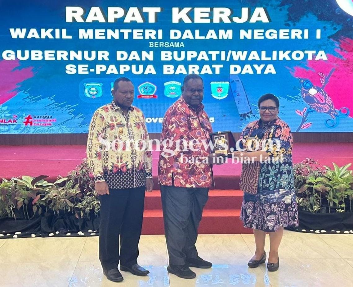 SORONG, PBD – Gubernur Papua Barat Daya Elisa Kambu menyampaikan sejumlah aspirasi penting kepada Wakil Menteri Dalam Negeri (Wamendagri) Ribka Haluk dalam Rapat Koordinasi Evaluasi Penyelenggaraan Pemerintahan Daerah dan Percepatan Program Quick Wins yang digelar bertempat disalah satu hotel di Kota Sorong, Kamis (6/11/25).