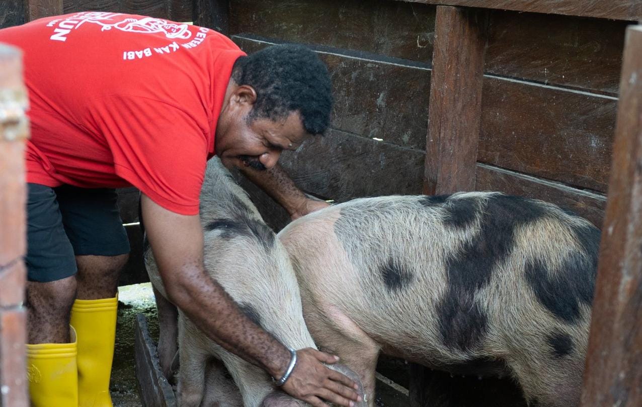 “Keterbatasan akses terhadap sumber pangan lokal serta tingginya ketergantungan pasokan bahan pangan dari Kota Sorong menjadi tantangan tersendiri. Kondisi ini mendorong masyarakat untuk mengembangkan usaha peternakan babi secara mandiri dan berkelompok,” ujar Bambang.