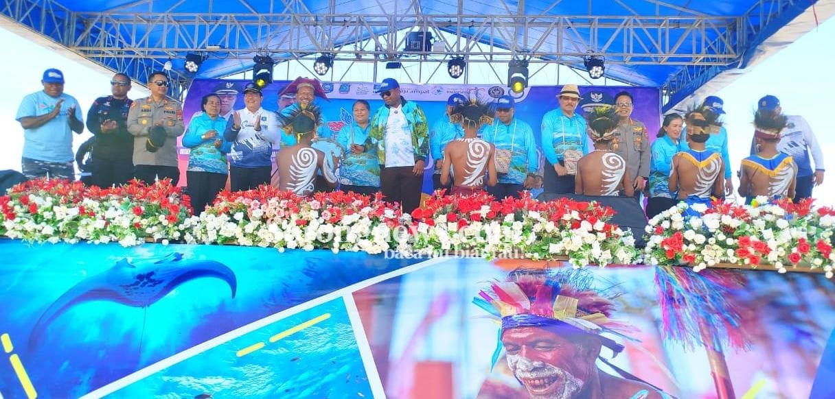 RAJA AMPAT, PBD – Festival Pesona Raja Ampat dan Gerakan Masyarakat Makan Ikan (Gemarikan) dibuka secara resmi di pantai Waisai Torang Cinta (WTC), Raja Ampat, Sabtu (18/10/2025).