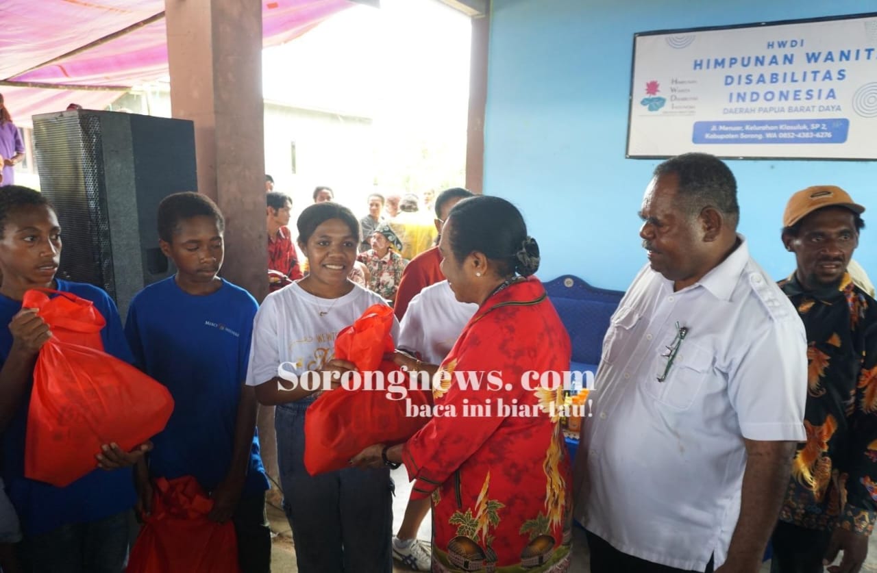 SORONG, PBD – Pemerintah Provinsi Papua Barat Daya kembali menegaskan komitmennya dalam menghadirkan negara di tengah masyarakat, khususnya bagi kelompok rentan. Hal tersebut diwujudkan melalui penyaluran bantuan sosial kepada penyandang disabilitas, lansia, dan anak-anak panti asuhan yang digelar di sekretariatan Himpunan Wanita Disabilitas Indonesia (HWDI) Papua Barat Daya, SP2 Kabupaten Sorong, Jumat (9/1/2026).