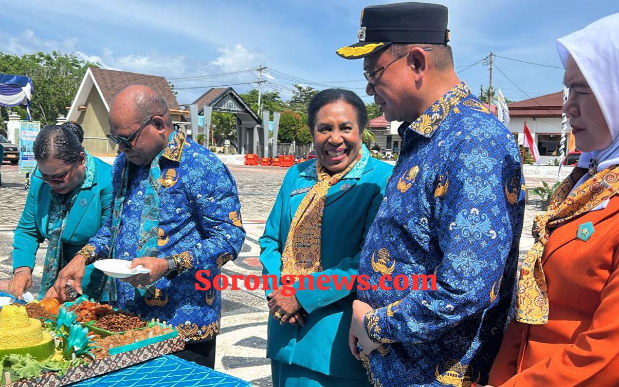 Pelaksanaan peringatan HKG tersebut ditandai dengan pemotongan tumpeng oleh Wali Kota Sorong Septinus Lobat.