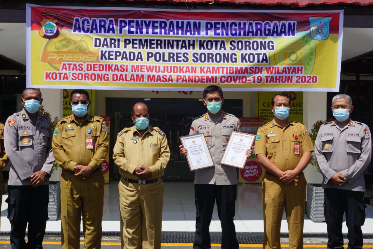 Kapolres, AKBP Ary Nyoto Setiawan mengucapkan rasa terima kasihnya kepada Wali Kota Sorong dan jajaran atas penghargaan yang diterimanya.
