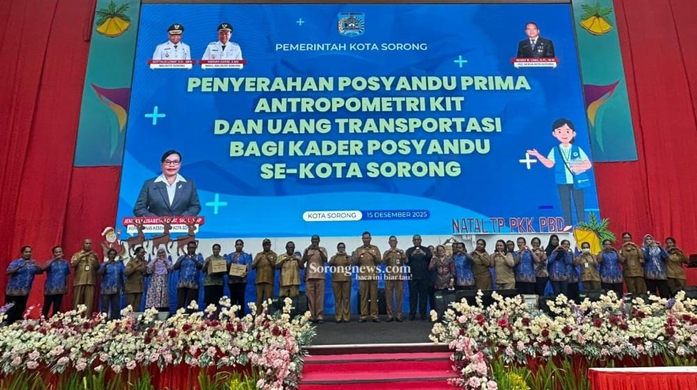 SORONG, PBD – Pemerintah Kota (Pemkot) Sorong menyerahkan Posyandu Prima Antropometri Kit serta uang transportasi bagi kader Posyandu se-Kota Sorong bertempat di Gedung Lambert Jitmau, Kota Sorong, Papua Barat Daya, Senin (15/12/25).