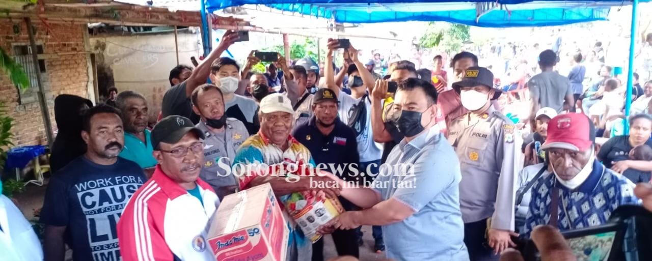 Dalam pertemuan Kamis sore tersebut, Kapolres Sorong Kota memberikan bantuan sembako kepada keluarga korban untuk digunakan pada proses ibadah. (Mewa)