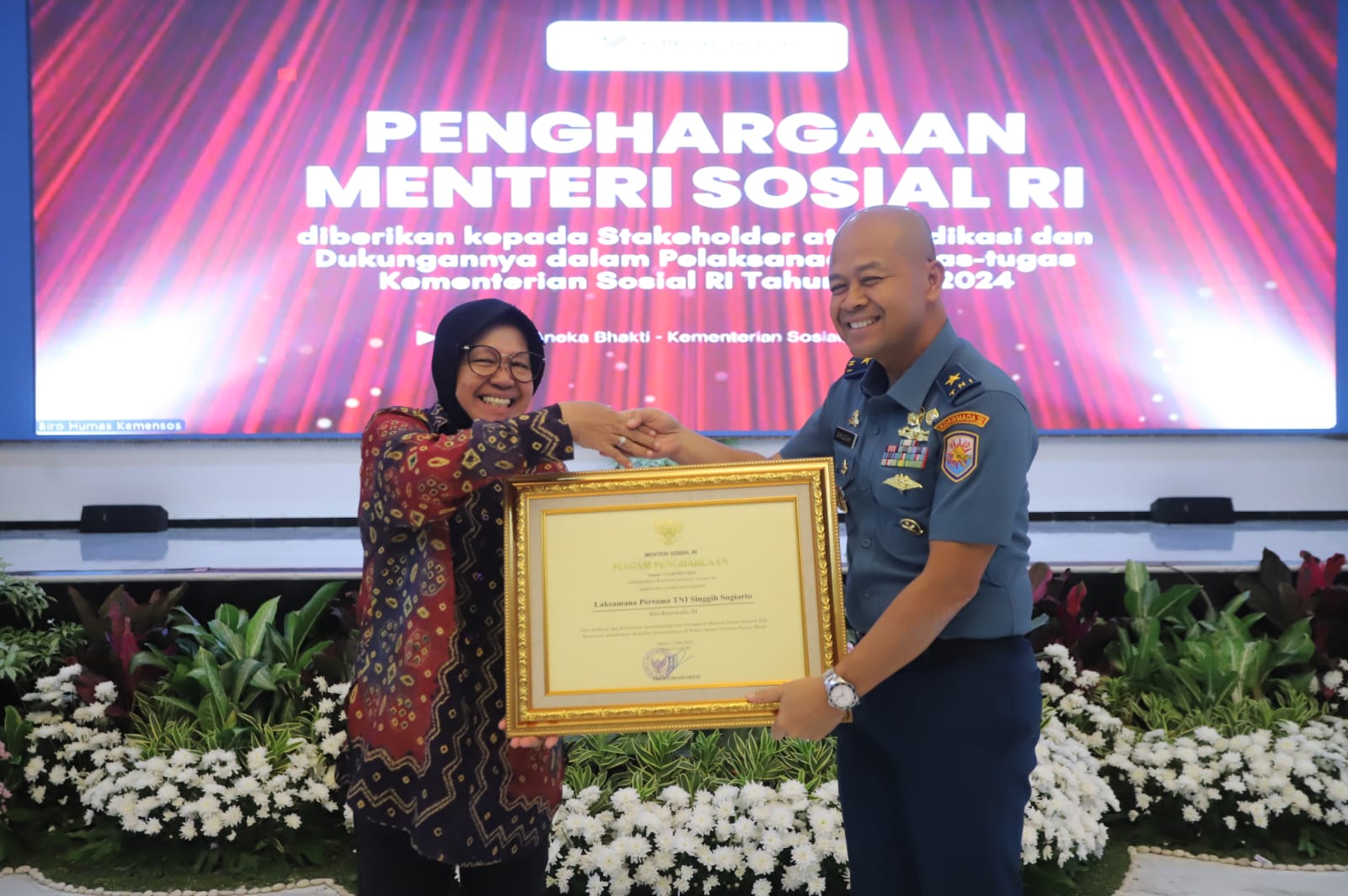 JAKARTA, – Menteri Sosial Republik Indonesia (Mensos) Dr. Ir. Hj. Tri Rismaharini, M.T., memberikan penghargaan kepada Kepala Staf Koarmada III Laksamana Pertama TNI Singgih Sugiarto, S.T., M.Si., dan sejumlah pemangku kepentingan yang banyak membantu tugas-tugas Kementerian Sosial RI, adapun penghargaan tersebut diberikan kepada 67 orang yang terdiri dari 43 Perwira TNI, 23 Perwira Polisi, serta seorang Guru dari sebuah Sekolah Dasar di Kabupaten Bandung, di Jakarta, Senin (8/7/24).