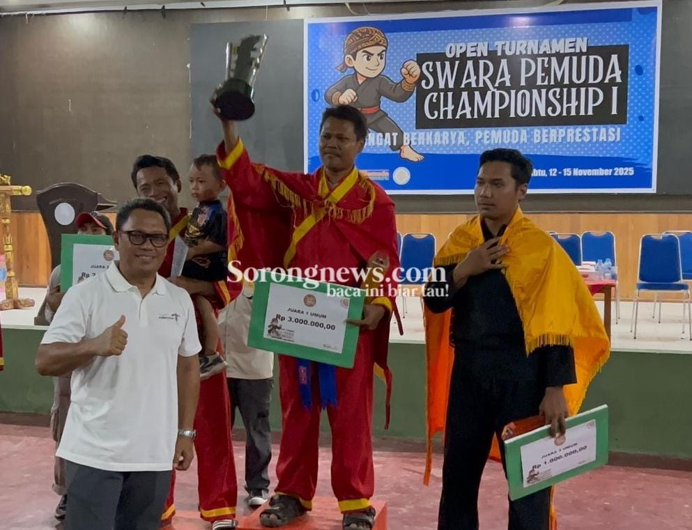 SORONG, PBD – Pelaksanaan Open Turnamen Swara Pemuda Championship I bergulir sukses bertempat di Gedung Serbaguna Batalyon 762/VYS Sorong, Kota Sorong, Sabtu sore (15/11/25).
