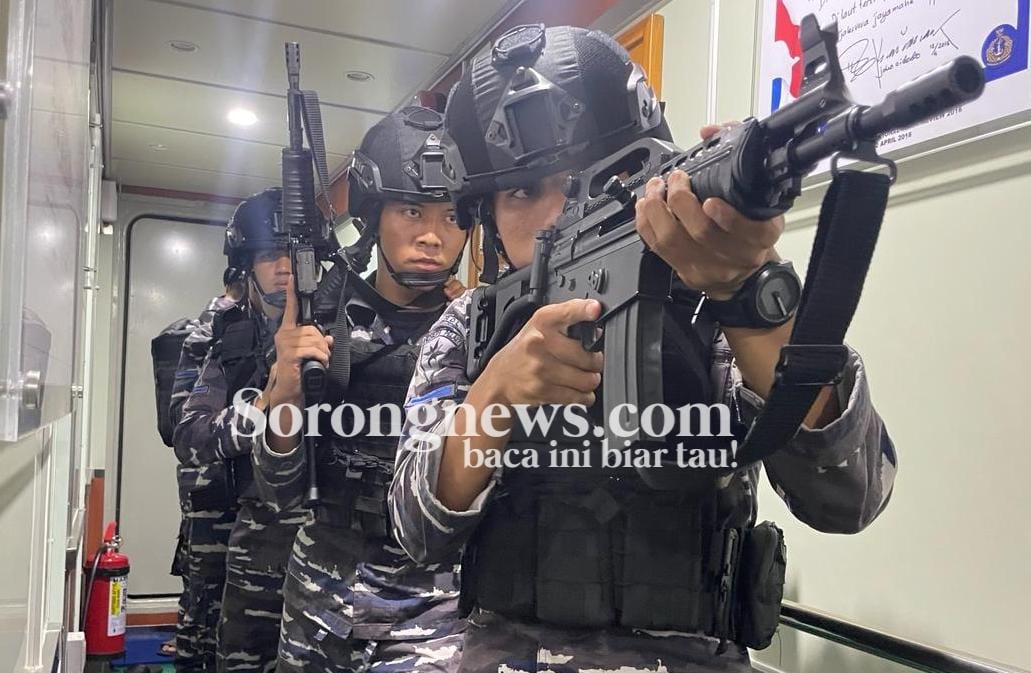 SORONG, PBD – Prajurit Satuan Kapal Cepat (Satkat) Koarmada III, yaitu KRI Panah-626, melaksanakan Latihan Visit Board Search and Seizure (VBSS) dengan Satkopaska Koarmada III yang dilaksanakan diatas KRI Panah-626 di Perairan Sorong Papua Barat Daya. Jumat (16/02/24).