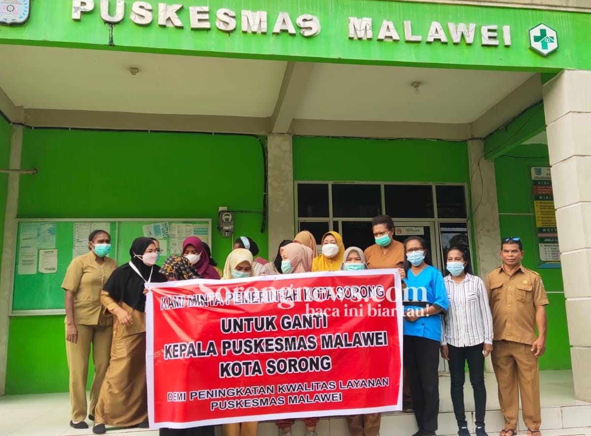SORONG, PBD – Sejumlah tenaga kesehatan di Puskesmas Malawei melakukan unjuk rasa damai dengan membentangkan spanduk meminta Pj Wali Kota untuk segera mengganti kepala Puskesmas Malawei yang dianggap tidak mampu memimpin puskesmas setelah 5 tahun memimpin.