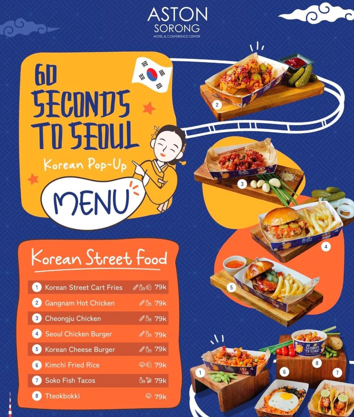 Dalam promo ini, manajemen Aston Hotel Sorong menyuguhkan beragam menu autentik bercita rasa Korea, diantaranya tteokbokki dengan sentuhan saus gochujang yang khas, Korean burger dengan tekstur roti yang lembut dan saus lumer pilihan, serta Seoul chicken burger yang memadukan ayam crispy dengan saus khas Korea.