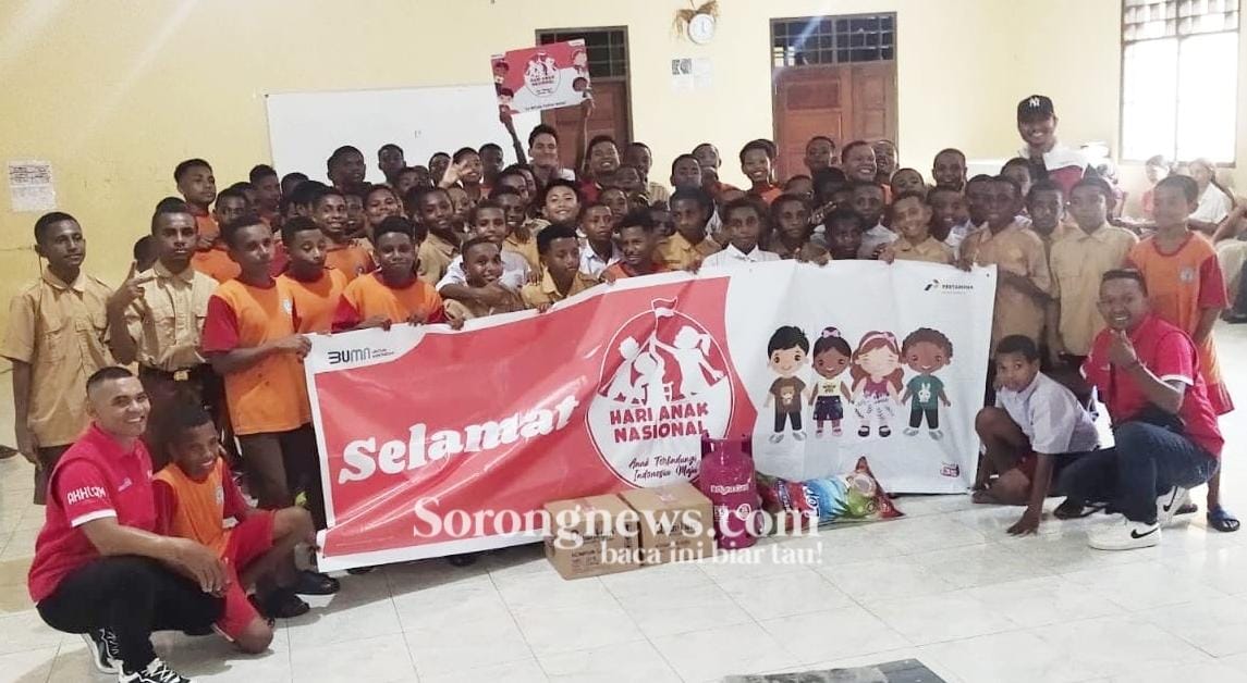 Turut memeriahkan hari anak nasional PT Pertamina Patra Niaga Wilayah Papua Barat, Kabupaten Manokwari melakukan kolaborasi bersama Retail Sales Papua Barat, Fuel Terminal Manokwari dan Aviation Fuel Terminal Membagikan sembako, ATK, Brithgas dan Voucher BBM sekaligus mengadakan kuis-kuis berhadiah bagi anak-anak Asrama Katolik Vilanopa.