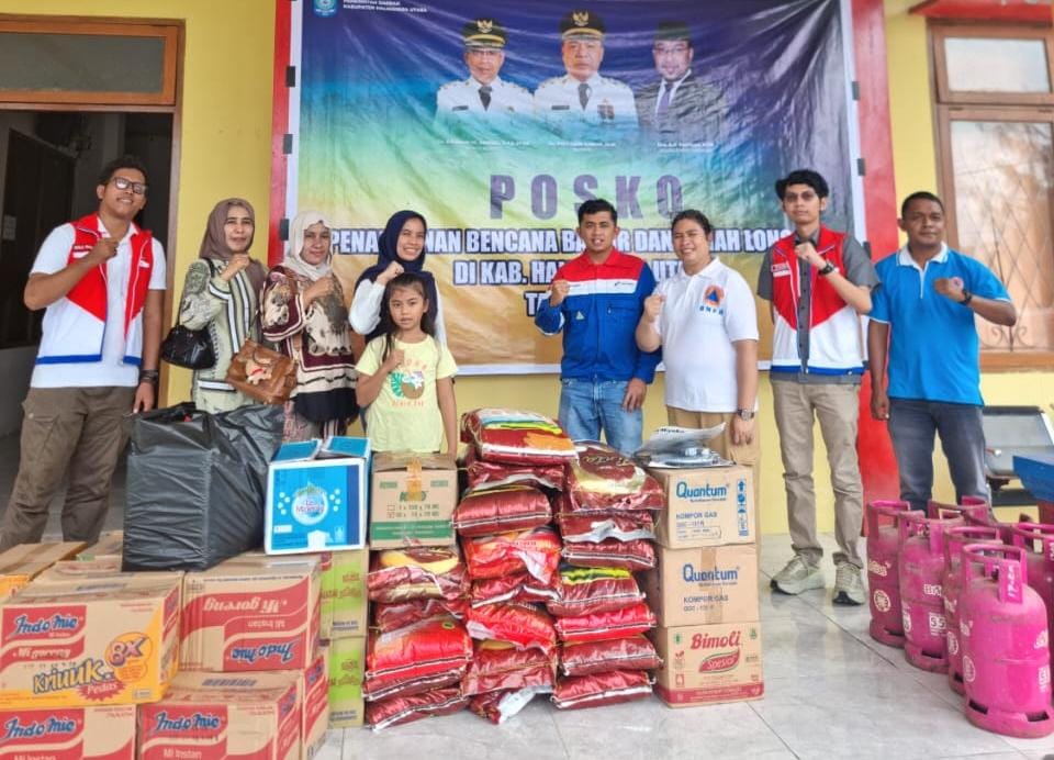 Bantuan yang diberikan berupa sembako dan makanan siap saji, perlengkapan tidur seperti sprei dan selimut, serta LPG Bright Gas untuk mendukung operasional dapur umum di posko pengungsian.