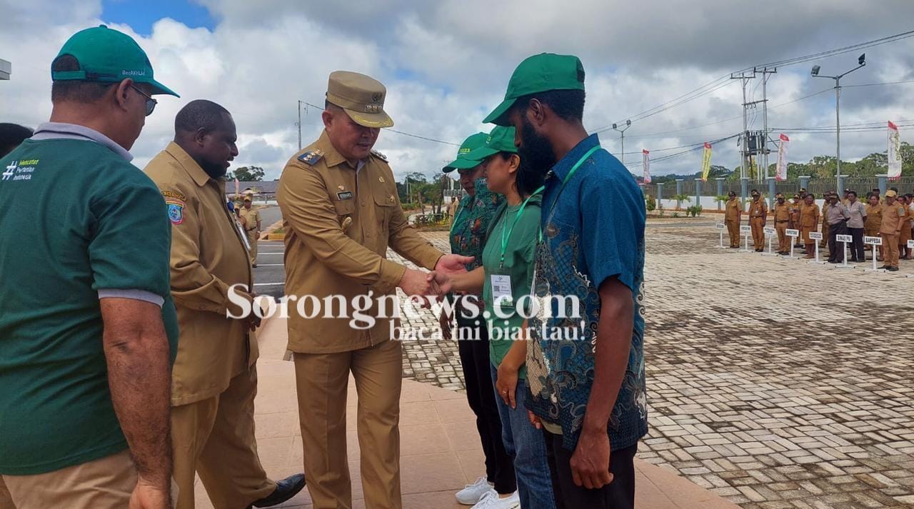 MAYBRAT, PBD – Penjabat (Pj) Bupati Maybrat, Bernhard E. Rondonuwu memimpin apel siaga sekaligus melepaskan petugas sensus pertanian tahun 2023 di halaman kantor Bupati Maybrat, Kabupaten Maybrat, Papua Barat Daya, Senin (30/5/23).