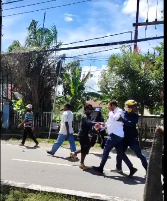 Kabid Humas Polda Papua. Kombes Pol Ignatius Benny Ady Prabowo kepada sorongnews.com membenarkan bahwa Pj Gubernur Papua, Ridwan Rumasukun terkena lemparan batu dan sejumlah aparat keamanan.