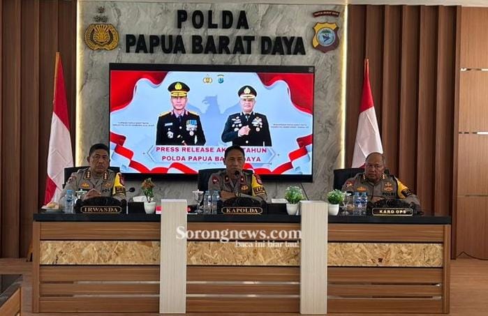 SORONG, PBD – Kepolisian Daerah (Polda) Papua Barat Daya menggelar Press Release Akhir Tahun 2025 bertempat di Mapolda Papua Barat Daya, Kabupaten Sorong, Selasa (30/12/2025).
