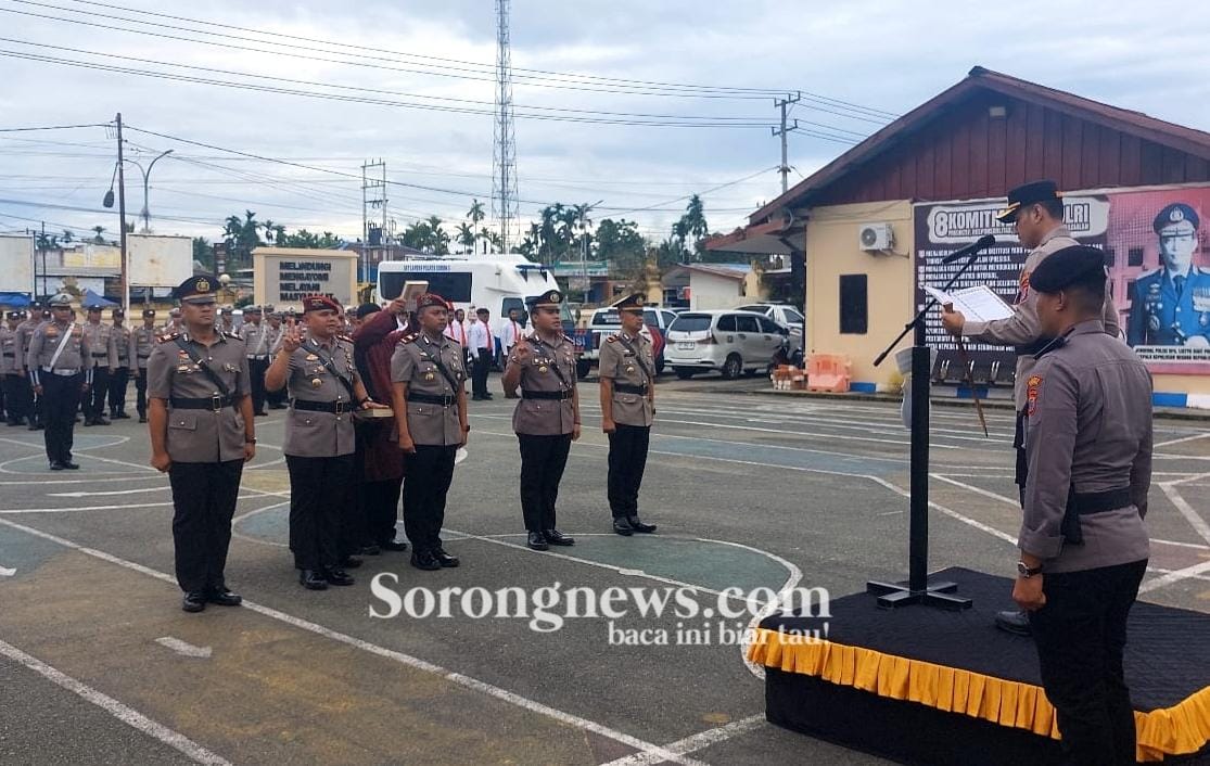Upacara sertijab tersebut dipimpin langsung oleh Kapolres Sorong AKBP Edwin Parsaroan, diikuti jajaran personel Polres Sorong dan Bhayangkari Polres Sorong.