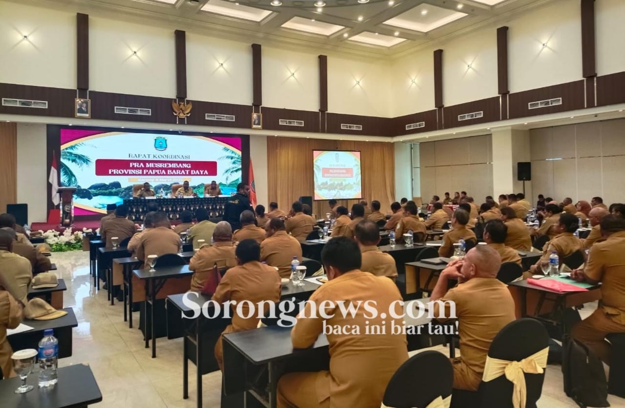 SORONG, PBD – Pemerintah Provinsi Papua Barat Daya (Pemprov PBD) menggelar Rapat Koordinasi (Rakor) Pra-Musrenbang PBD bertempat disalah satu hotel di Kota Sorong, Papua Barat Daya, Selasa (11/3/25).