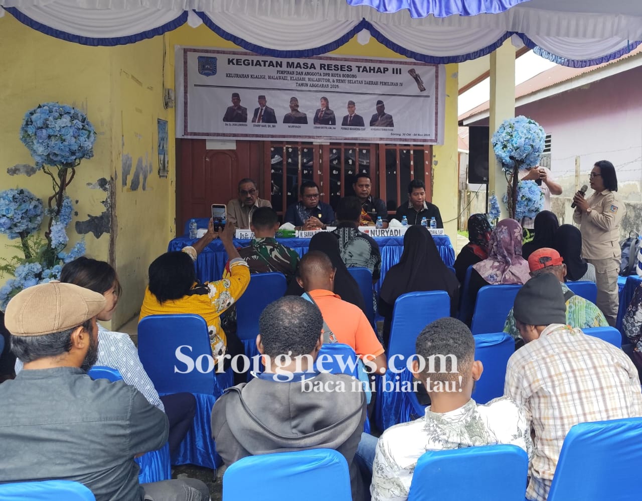 Kegiatan reses daerah pemilihan (dapil) IV ini dipimpin langsung oleh Ketua DPRK Sorong Jhon Lewerissa didampingi anggota DPR Kota Sorong yakni Mohammad Saman Bugis, Syarif Nari, Nuryadi, Permadi Mahardika, dan Lusiana Safutri.