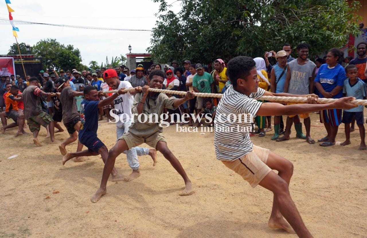 Sebanyak 42 tim atau sekitar 420 orang mengikuti lomba tarik tambang dengan pendukung ratusan orang lainnya. Teriakan dan dukungan warga mendukung masing-masing tim tarik tambang mengawali sejumlah lomba yang akan memeriahkan halaman rumah ketua DPRD Kota Sorong tersebut.