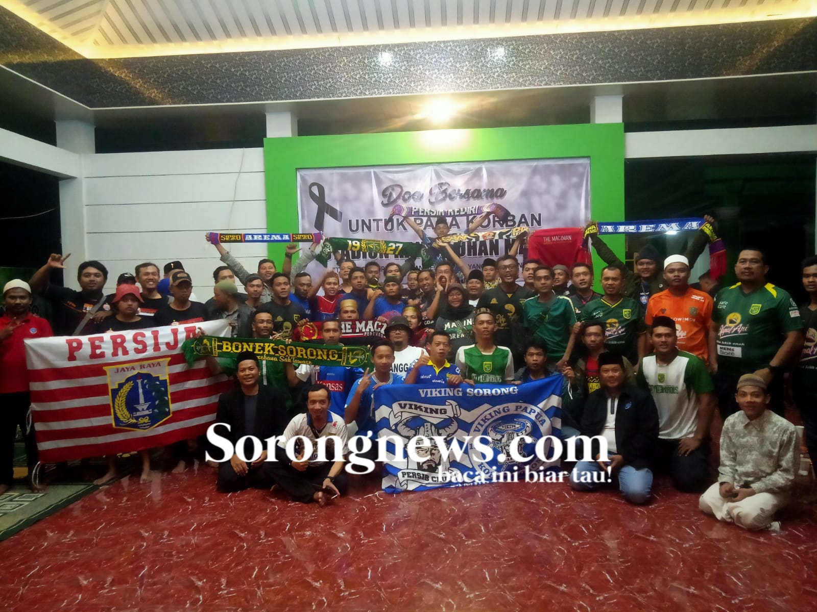 SORONG,- Puluhan suporter sepak bola di Kota Sorong, Papua Barat, berasal dari berbagai klub kebanggaannya masing-masing, tumpah ruah dan menyatu menggelar doa bersama lintas agama bertempat di Pendopo Ikaswara Kota Sorong, Papua Barat, Rabu malam (5/10/22) sekitar pukul 20.00 WIT.