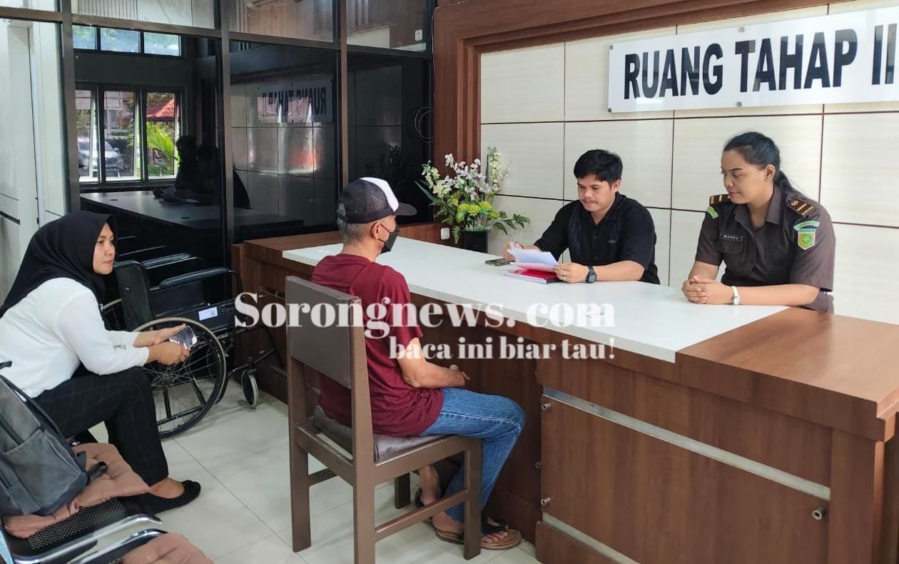 Tersangka datang diantar langsung Kanit PPA Polresta Sorong Kota, Ipda Eka Tri Lestari Abusama selaku penyidik dan penasihat hukumnya untuk menjalani pemeriksaan administrasi tahap II sebelum dilakukan penahanan.