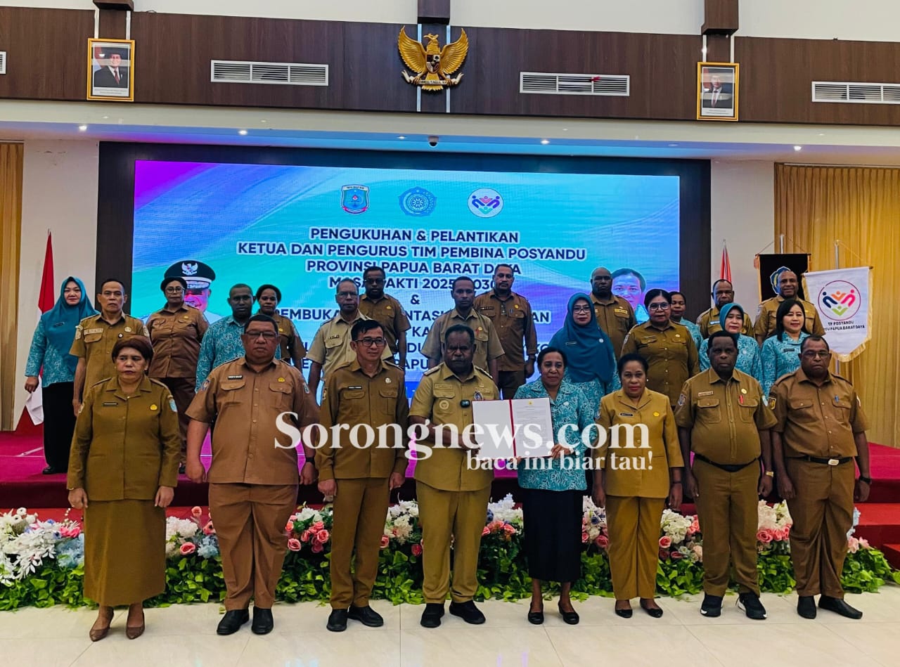 SORONG, PBD- Gubernur Papua Barat Daya Elisa Kambu secara resmi mengukuhkan dan melantik Ketua serta jajaran Pengurus Tim Pembina Posyandu Provinsi Papua Barat Daya Masa Bakti 2025-2030 bertempat disalah satu hotel di Kota Sorong, Senin (21/7/25).