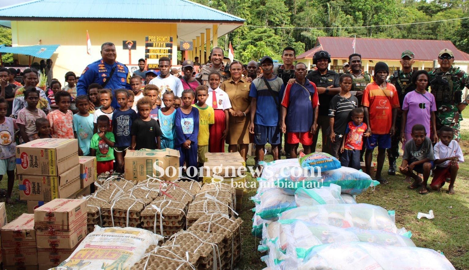 MAYBRAT, PBD- Wakapolda Papua Barat, Brigjen Pol. Alfred Papare, SH,S.IK didampingi oleh Kepala Dinas (Kadis) Sosial Kabupaten Maybrat, Magdalena Tenau dan rombongan menyalurkan bantuan sosial (bansos) bahan makanan bagi masyarakat Kampung Ayata, Aifat Timur Tengah, Kabupaten Maybrat, Papua Barat Daya, Selasa, (5/12/23).