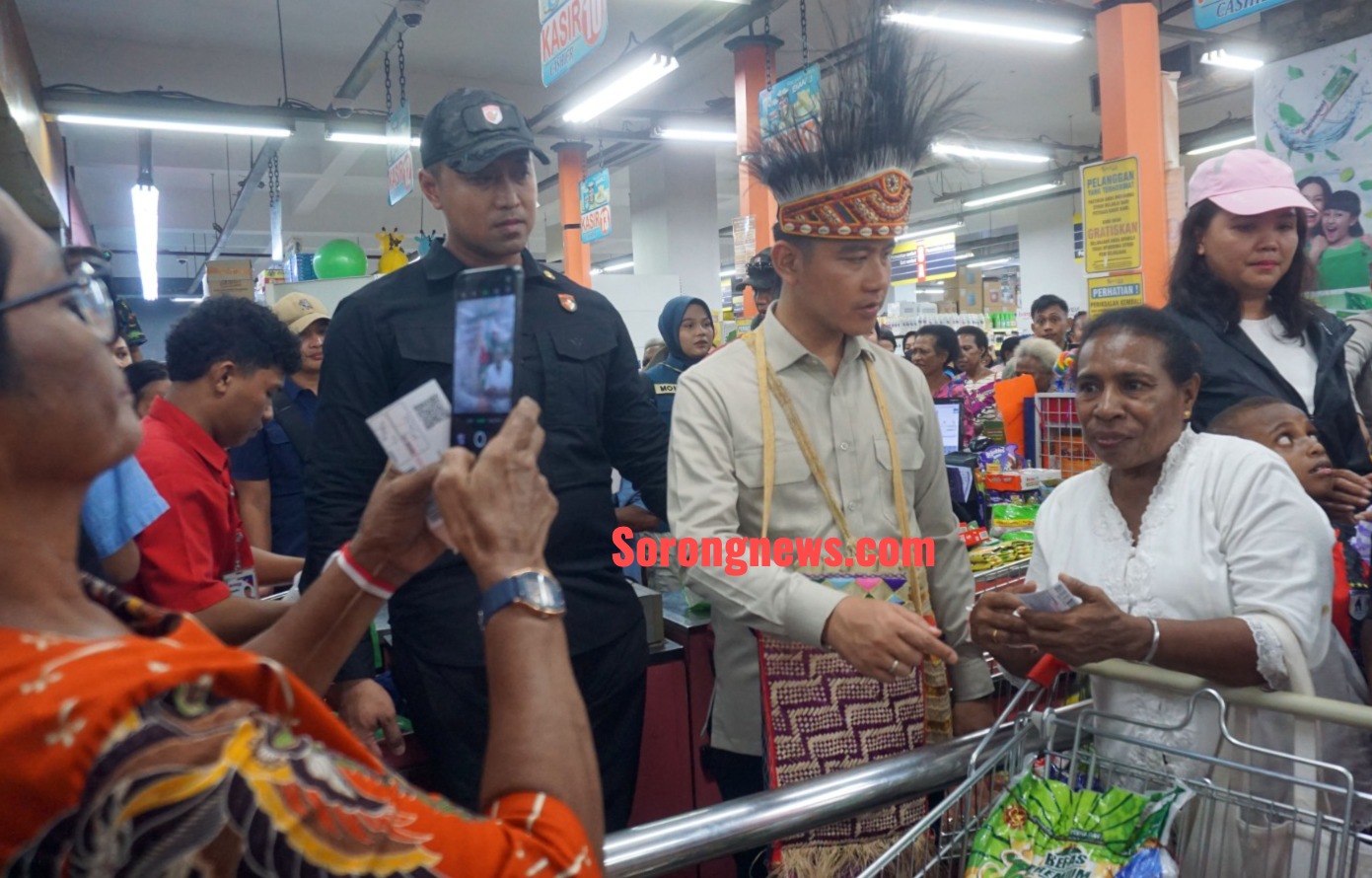 Didampingi Gubernur Papua Barat Daya Elisa Kambu, rombongan justru bergerak menuju Saga Supermarket untuk menyapa masyarakat secara langsung.