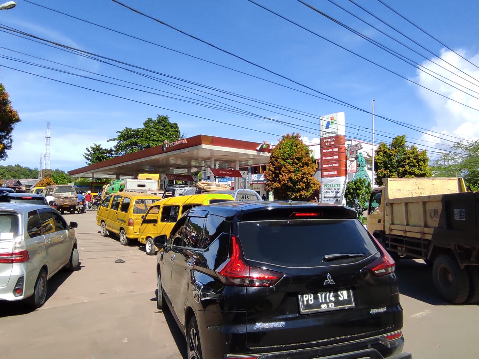 “Katanya BBM mau naik, jadi kami mengantri dari pagi (06.00) sampai sekarang (sekitar pukul 10.00),” ujar Melda salah satu warga yang mengantri di SPBU Jalan Baru.